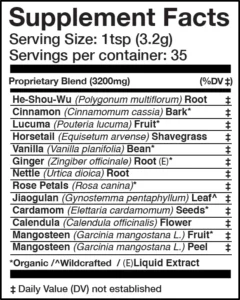 - A proprietary blend of adaptogens, spices, and flowers.