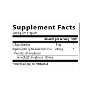 Ergothioneine is a naturally occurring amino acid found mostly in our cells and tissues. Research suggests that this compound decreases as we age, signaling a need for Ergothioneine supplementation. Moreover, mushrooms – such as Oyster and Shiitake – have the highest amounts of Ergothioneine, and research shows that this beneficial compound is most bioavailable when consumed through mushrooms as part of a meal. Real Mushrooms Ergo+ (60 Caps) gives you your daily potent dose of Ergothioneine, boosted by the beta-glucan content found in Oyster and Shitake mushrooms. With Ergo+, you combine the benefits of an immune support supplement, and brain supplement for focus, energy, memory, & clarity all in one bottle. Studies suggest that as we age, L-ergothioneine levels in the body decrease and supplementing with ergothioneine could help mitigate age related ailments.