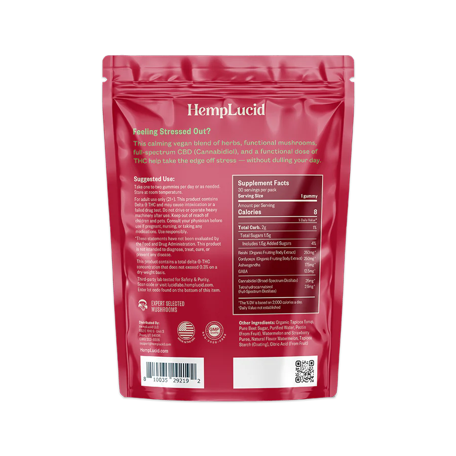 HempLucid Pure Stress Mushroom Functional Gummies – Watermelon