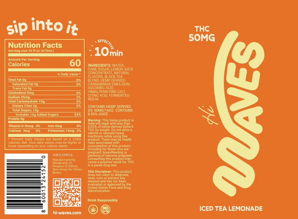 Hi-Waves Tall Boy Sparkling Hemp Beverage is a refreshing ready-to-drink sparkling beverage crafted with a measured amount of hemp-derived extract. Each tall boy can contains a consistent 50mg of hemp-derived cannabinoids, offering a flavorful option for those seeking a plant-based beverage alternative.