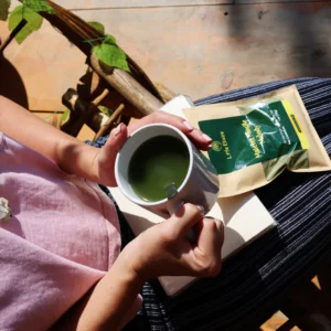 This matcha powder is positioned as a great choice for individuals seeking a healthier, focused, and relaxed start to their day with the added benefits of mint, Ashwagandha, and ginger.