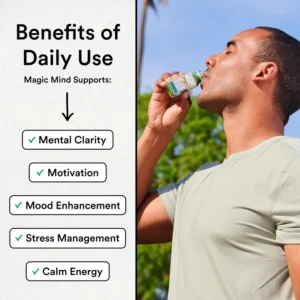 Magic Mind is a convenient mental performance shot designed to support your daily productivity. This drink combines a blend of nootropics, adaptogens, and essential vitamins, offering a natural way to help you stay focused and energized throughout your day.