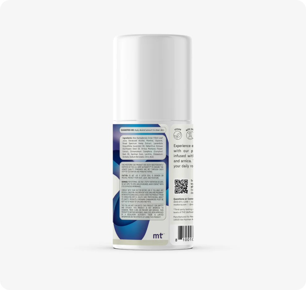 Medterra Rapid Recovery Cooling Roll-On 1200mg is a targeted topical applicator formulated to support muscle comfort and post-activity wellness. This easy-to-apply roll-on uses a cooling blend designed to refresh tired muscles and joints with a roll-on that’s perfect for on-the-go use.