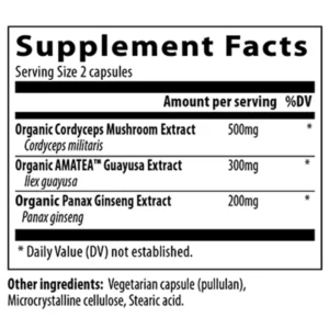 • A unique blend of Cordyceps mushroom with Guayusa and Ginseng extracts